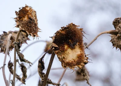 Mimo to warto dokonać co jakiś czas inspekcji inwentarza. Strącić śnieg z iglaków, sprawdź, czy nie połamał on gałęzi, które wtedy trzeba zabezpieczyć maścią, oraz czy zimowy wiatr nie odsłonił wrażliwych roślin. Jeśli nadchodzą silne mrozy bez śniegu trzeba poprawić agrowłókninę, stroisz lub słomiane maty.